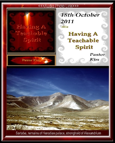 Our Devotion And Love To God  16th October 2011  Pastor Kim L.Page Our Devotion And Love To God  16th October 2011  Pastor Kim L.Page Having A Teachable Spirit  18th October 2011  Pastor Kim L.Page Having A Teachable Spirit  18th October 2011  Pastor Kim L.Page