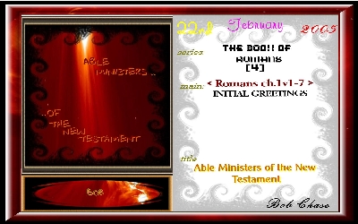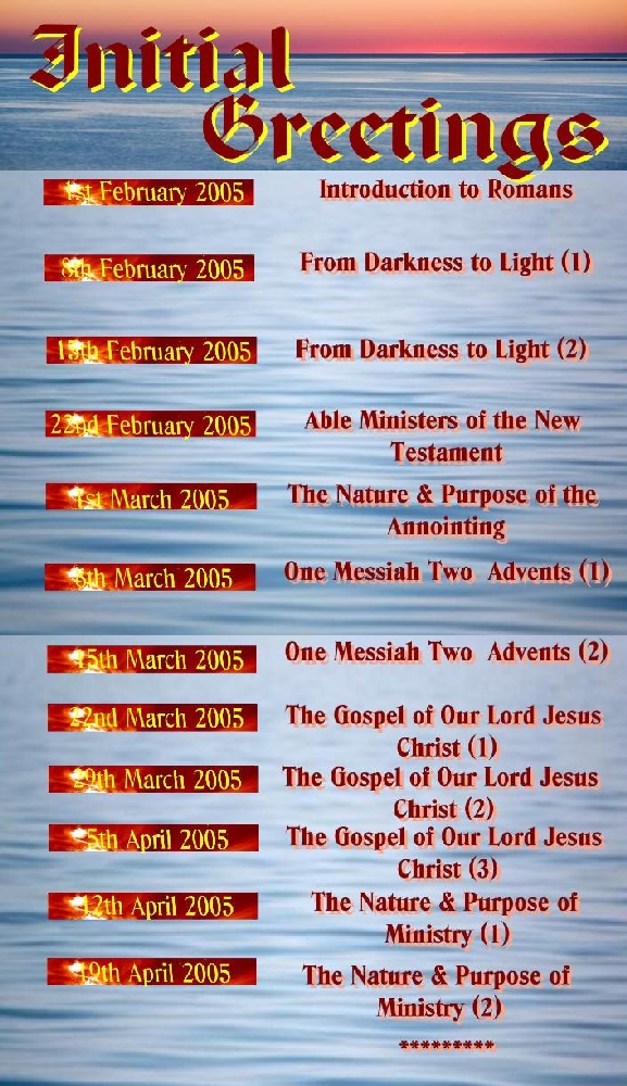INTRODUCTION TO THE BOOK OF ROMANS From Darkness To Light (2)  15th February'05  Bob INTRODUCTION TO THE BOOK OF ROMANS Able Ministers Of The New Testament  22nd February'05  Bob