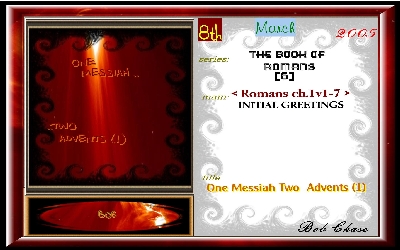 INTRODUCTION TO THE BOOK OF ROMANS The Nature & Purpose of the Annointing  1st Mardh 2005  Bob One Messiah Two  Advents (1)  8th March 2005  Bob