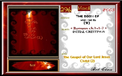 One Messiah Two  Advents (2)  15th March 2005  Bob The Gospel of Our Lord Jesus Christ (1)  22nd March 2005  Bob
