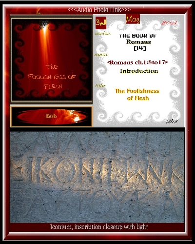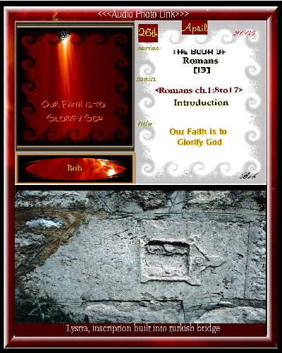 Our Faith Is To Glorify God 26th April 2005  Bob Our Faith Is To Glorify God 26th April 2005  Bob Lystra, inscription built into turkish bridge Iconium, inscription closeup with light The Foolishness Of Flesh 3rd May 2005  Bob The Foolishness Of Flesh 3rd May 2005  Bob
