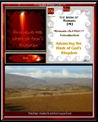 Advancing The Work Of God's Kingdom 10th May 2005  Bob Advancing The Work Of God's Kingdom 10th May 2005  Bob Pisidian Antioch, arched aqueduct The Cardo Maximus of Pisidian Antioch, (main street north and south) God Is Building His Church In Faithfulness 17th May 2005  Bob God Is Building His Church In Faithfulness 17th May 2005  Bob