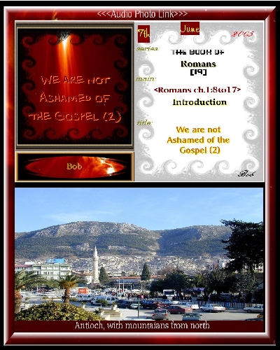 We Are Not Ashamed Of The Gospel (2) 7th June 2005  Bob We Are Not Ashamed Of The Gospel (2) 7th June 2005  Bob Antioch, with mountains from north Syro-phoenicia We Are Not Ashamed Of The Gospel (3) 14th June 2005  Bob We Are Not Ashamed Of The Gospel (3) 14th June 2005  Bob