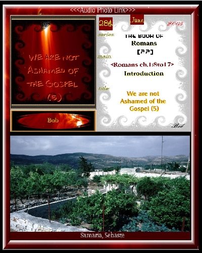 We Are Not Ashamed Of The Gospel (4) 21st June 2005  Bob We Are Not Ashamed Of The Gospel (4) 21st June 2005  Bob Syro-phoenicia, Tyre, roman remains Samaria, Sebaste We Are Not Ashamed Of The Gospel (5) 28th June 2005  Bob We Are Not Ashamed Of The Gospel (5) 28th June 2005  Bob