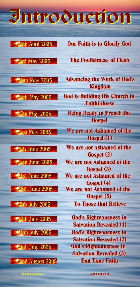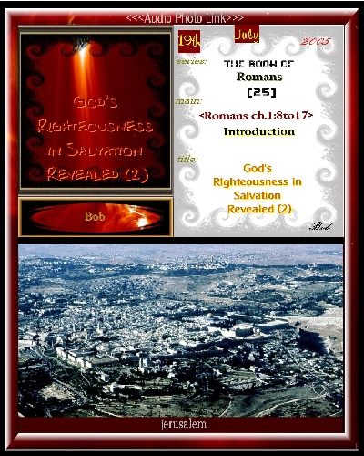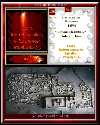 To Those That Believe 5th July 2005  Bob To Those That Believe 5th July 2005  Bob Samaria Jerusalem, model of old city God's Righteousness In Salvation Revealed (1) 12th July 2005  Bob God's Righteousness In Salvation Revealed (1) 12th July 2005  Bob